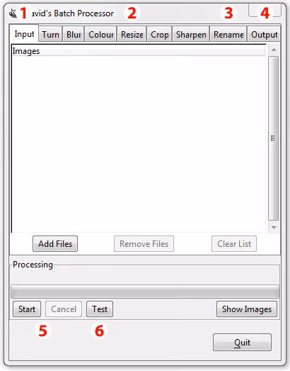 - Input – The input page is used to choose images to process.
