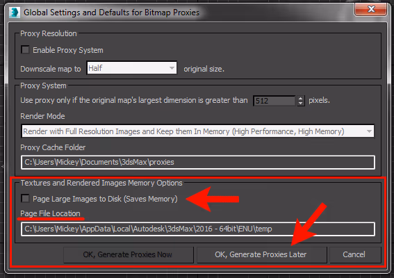 - Page Large Images to Disk (Saves Memory) use this switch to turn on Bitmap Pager