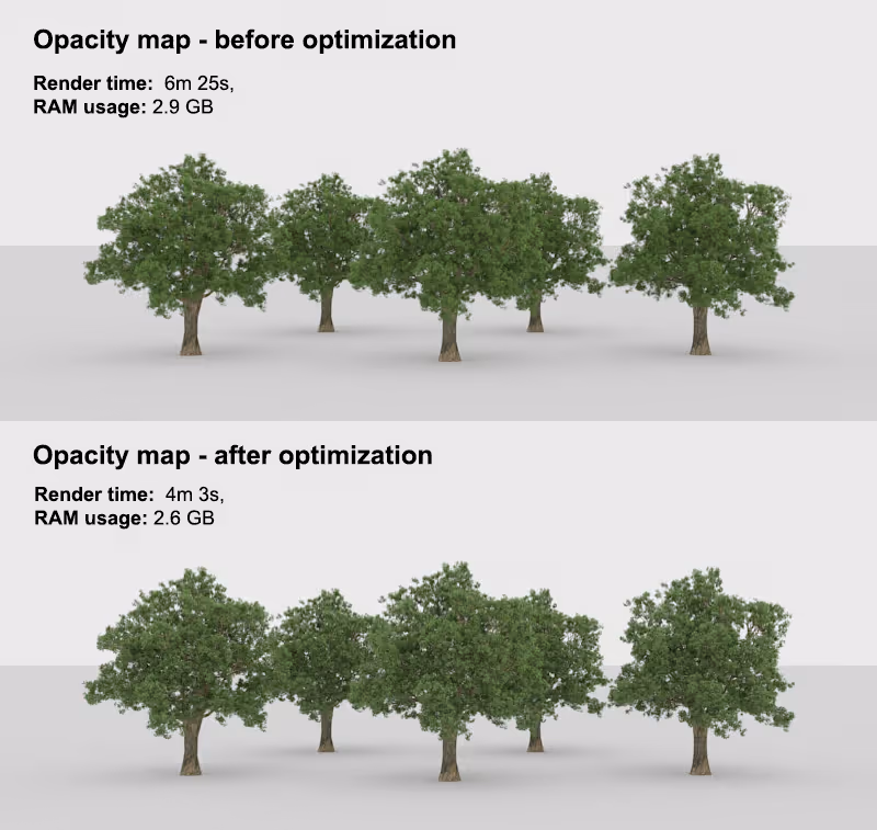 Below, we will give you some methods of optimizing opacity maps to get shorter render times.