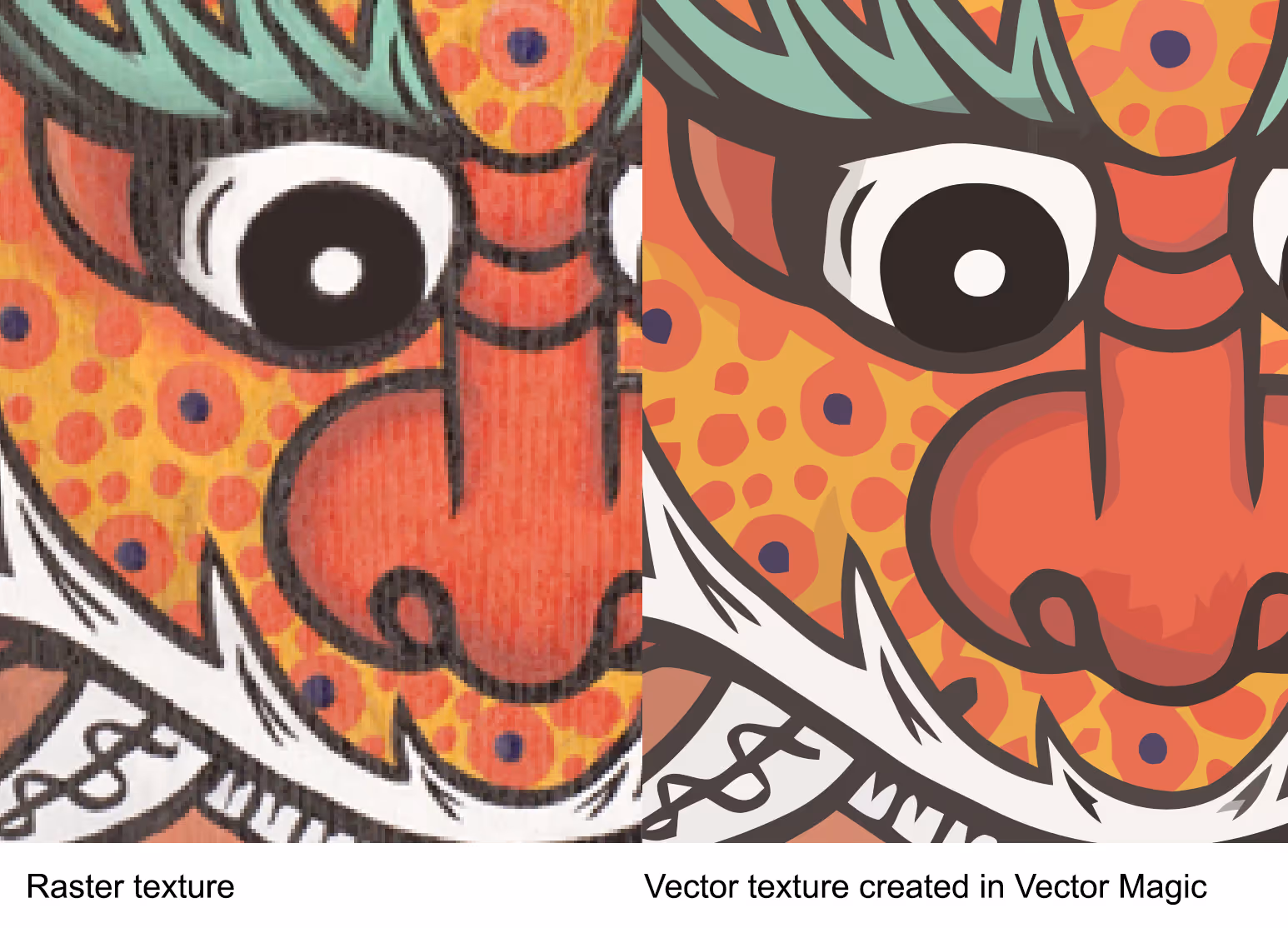 Vector maps work the best for posterized and simple images like logos, artworks, or cartoon textures. In the case of cartoons, they give a possibility of animating a texture, and you don’t need to worry that you will see pixels on color edges in any shot.