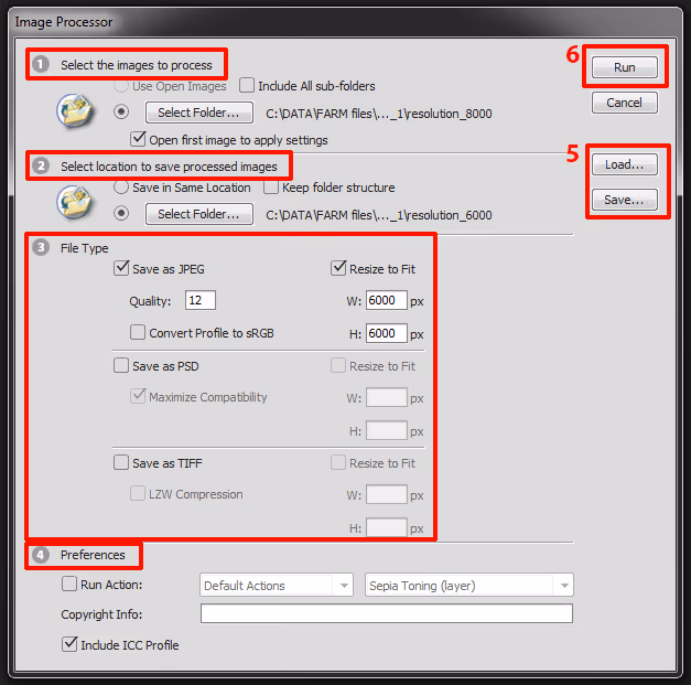 - Use Open Images – Image Processor will process images which are already opened in Photoshop (not recommended).