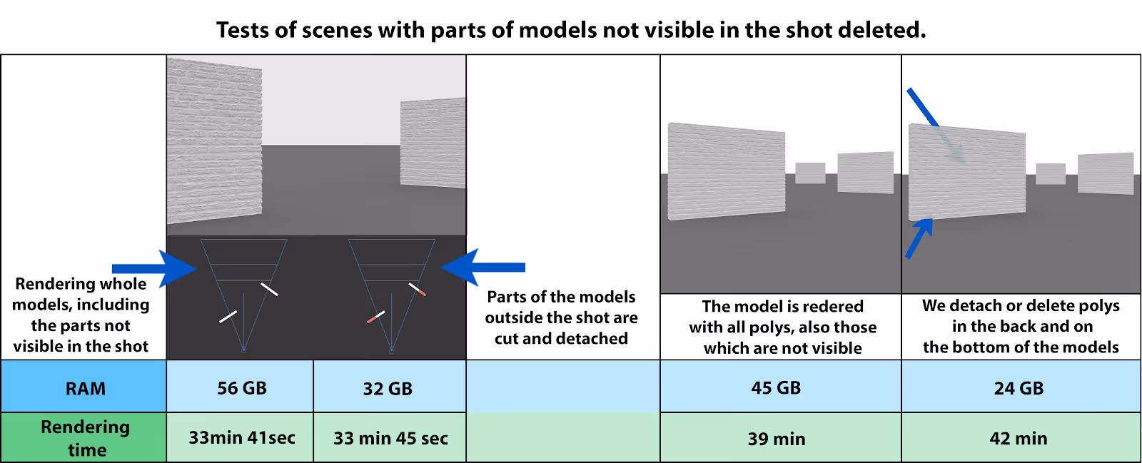 We can delete the parts not visible in the shot, for example by cutting and detaching the part of the model which is not visible in the frame.