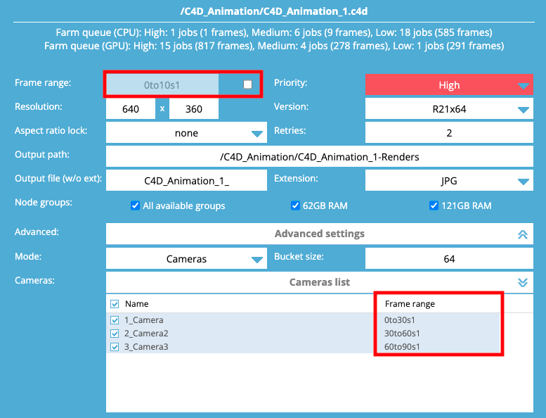 - Global frame setting has been improved. If any renderable camera/take/render pass is listed in the job list table, the global frame range is now faded out. It still can be turned on (by a switch) and the frame range can be globally changed for all listed cameras/takes/render passes.