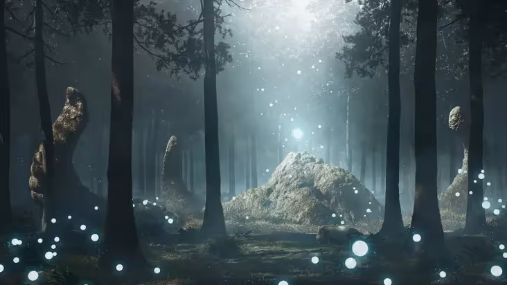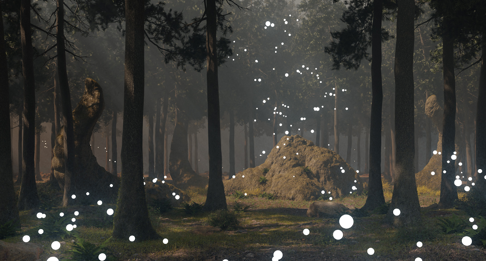 I’ve also added a cube with a volume scatter shader. This will mimic the forest humidity and give more ambient light and smooth shadows.