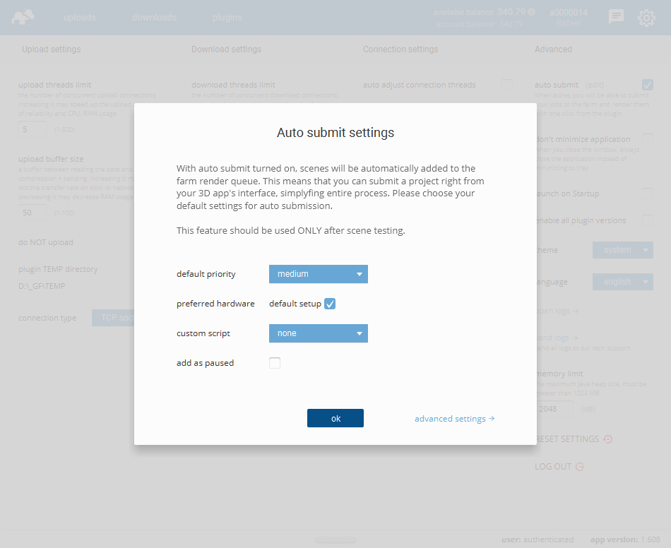 The auto submit feature is a real time-saver, especially if you’re working on multiple scenes or want to automate your pipeline as much as possible. Once enabled, your scenes can go straight into the render queue after upload – no extra clicks, no switching tabs.