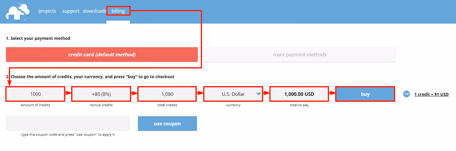 You’ll need to charge your account to continue using the service when you use up all your trial credits. Please note that when your balance goes below $0, you won’t be able to download rendered frames or start new render jobs. You can make payments in the Billing panel in Web Manager. We accept debit cards, credit cards, PayPal and DotPay payments. Also, you can purchase credits via Revolut or Zen.