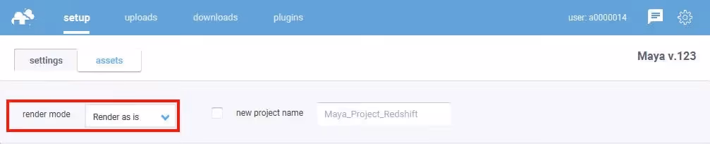 Version - by default, the version of Maya is set to the same version you have uploaded the project with. However, if you need to use a different version than the one detected, you can choose a specific version available on the list.