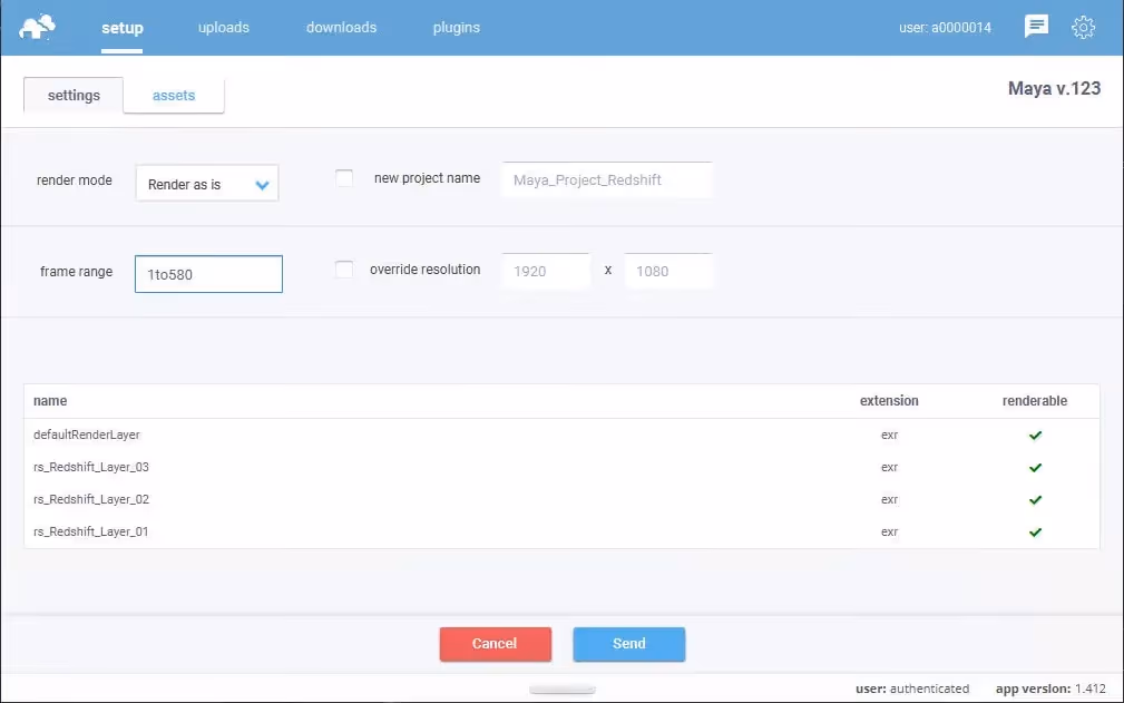 Our plugin automatically detects your settings that have been set in Maya render setup, but regardless of the render mode you choose, you can always make changes here in the plugin before sending the scene.