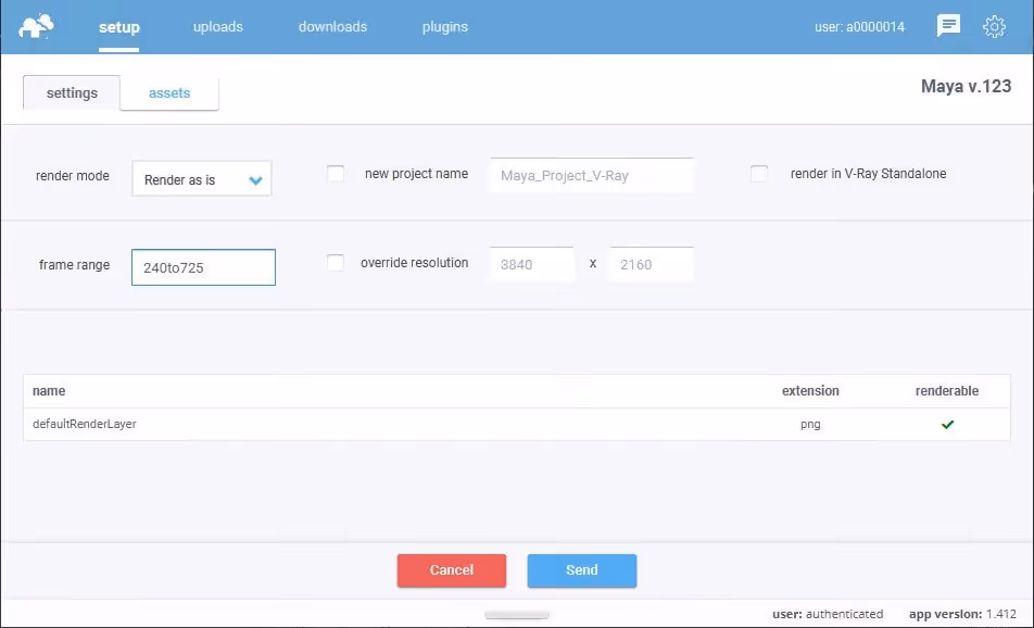 Our plugin automatically detects your settings that have been set in Maya render setup, but regardless of the render mode you choose, you can always make changes here in the plugin before sending the scene.