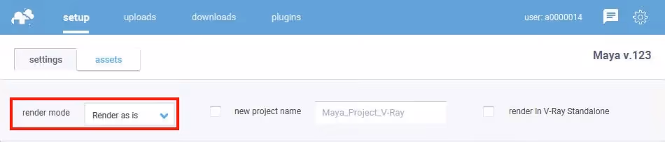 Version - by default, the version of Maya is set to the same version you have uploaded the project with. However, if you need to use a different version than the one detected, you can choose a specific version available on the list.