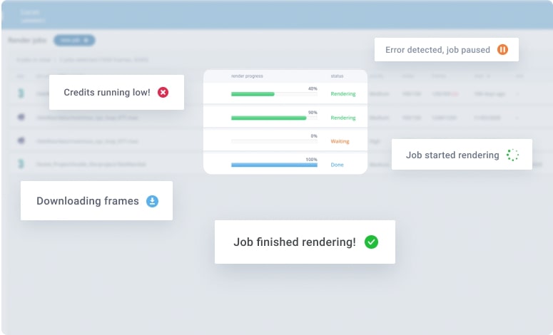 Webマネージャーの画面から、ジョブの進行状況をリアルタイムで確認できます。フレームが完了すると、アプリが自動でローカルの作業環境にダウンロードします。