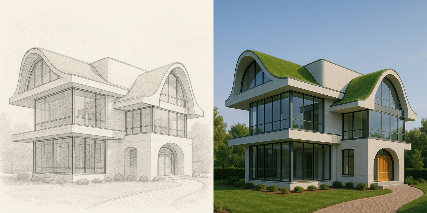 스케치에서 렌더까지: AI 도구를 활용한 외관 및 실내 디자인