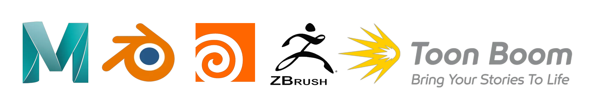 스튜디오는 프로젝트 스타일과 요구 사항에 따라 Maya, Blender, Houdini, Toon Boom Harmony, ZBrush 및 기타 전문 툴을 조합하여 사용합니다.