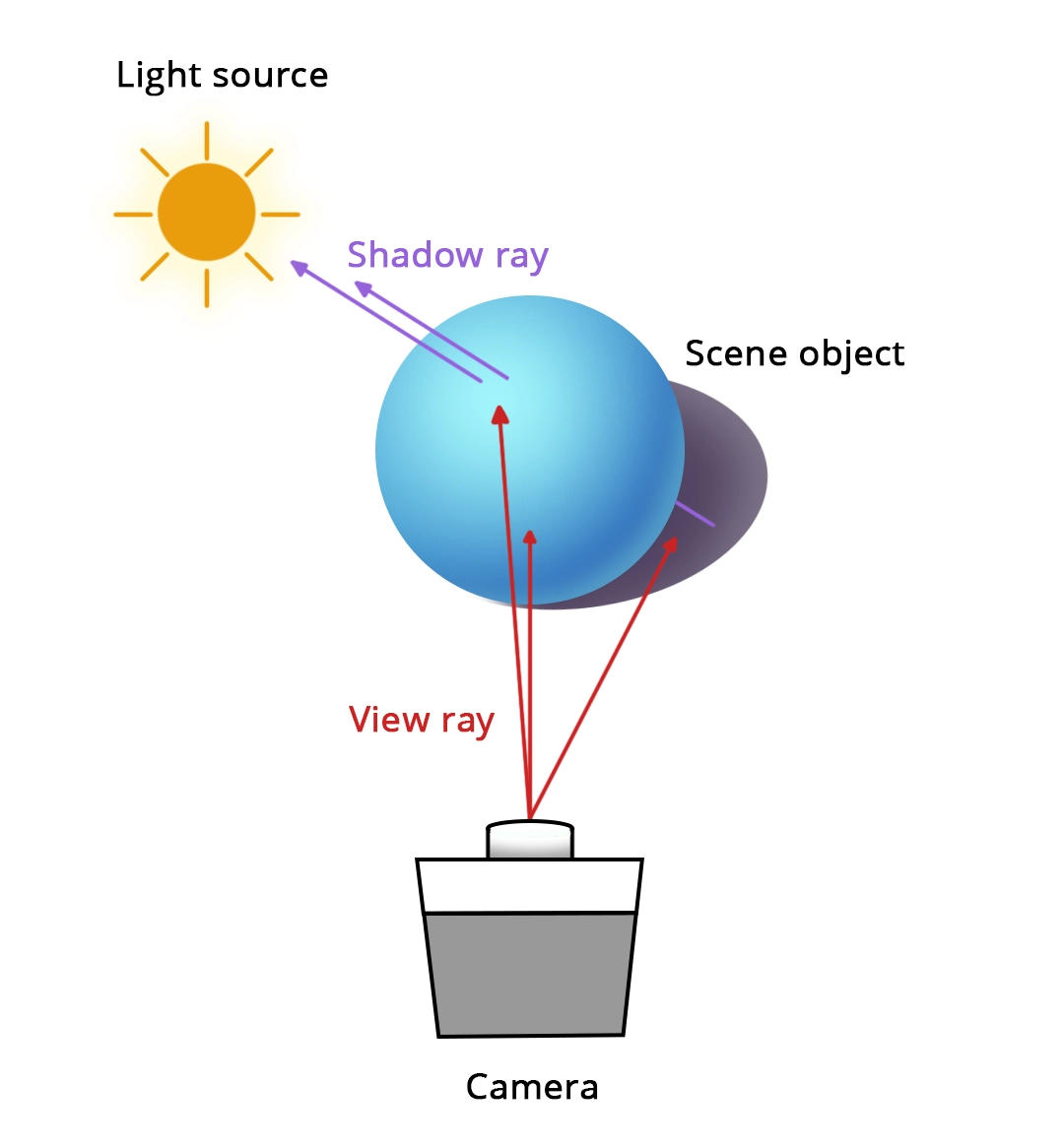 반면, 레이 트레이싱은 광학 원리를 사용하여 빛의 물리적 동작을 모방합니다. 카메라에서 발사된 빛은 장면 속으로 들어가 표면 사이를 반사하며 재질과 조명에 따라 반사, 굴절, 그림자를 생성합니다.