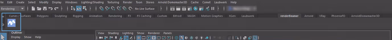 이런식으로 renderbeamer shelf와 아이콘이 생성됩니다.서여기서 렌더 세팅을 확인한 후, 저 아이콘을 누르면