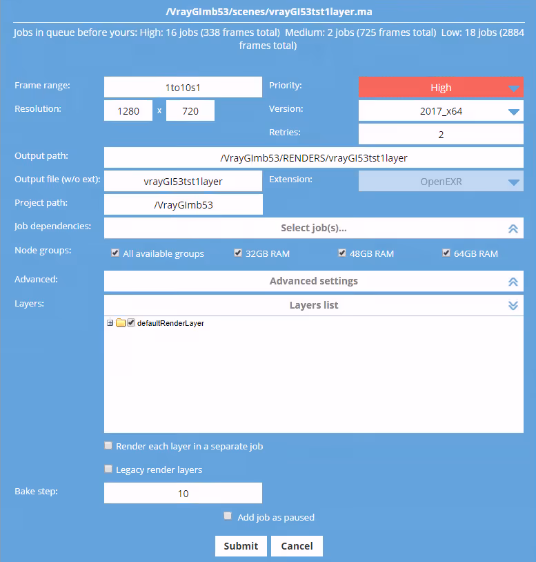 더불어, V-RAY 에서 애니메이션 랜더시 생기는 GI 플리커 현상을 잡아주는 작업도 자동으로 되어 엄청 좋습니다.(Light cache, Irradiance map텝에서 vrmap을 prepass로 먼저 뽑고 뽑아진 vrmap으로 rendering하는 방법) 개인 pc로 작업할 때는, 씬파일 별로 vrmap을 랜더한 후 하나하나 다시 랜더하는 번거로움이 있고, 시간도 많이 걸렸었는데, 가라지팜에서는 정말 쉽게 진행할 수 있었습니다.