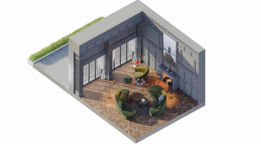 작업을 시작하기 전, 먼저 우리의 가라지팜 마스코트 마틸다가 쾌적하게 느낄 수 있는 공간들이 어떤 모습일지 오랫동안 구상했어요. 제 직감에 따르면 고전적인 형태와 현대적인 형태가 조합되어야 마틸다가 좋아할 것이라고 생각했어요. 다만 걱정했던 점은 혹시나 작업물이 너무 어둡고 압도적인 느낌은 아닐지, 하는 것이에요.(마틸다가 살아야 하는데 말이죠) 그래서 초기 버전을 그대로 두고 고민을 좀 했는데 시간이 지남에 따라서 조명 및 구성과 관련된 후속 변경 과정을 겪으면서 오, 이거다! 라는 확신이 들면서 작업 속도가 좀 붙었습니다.