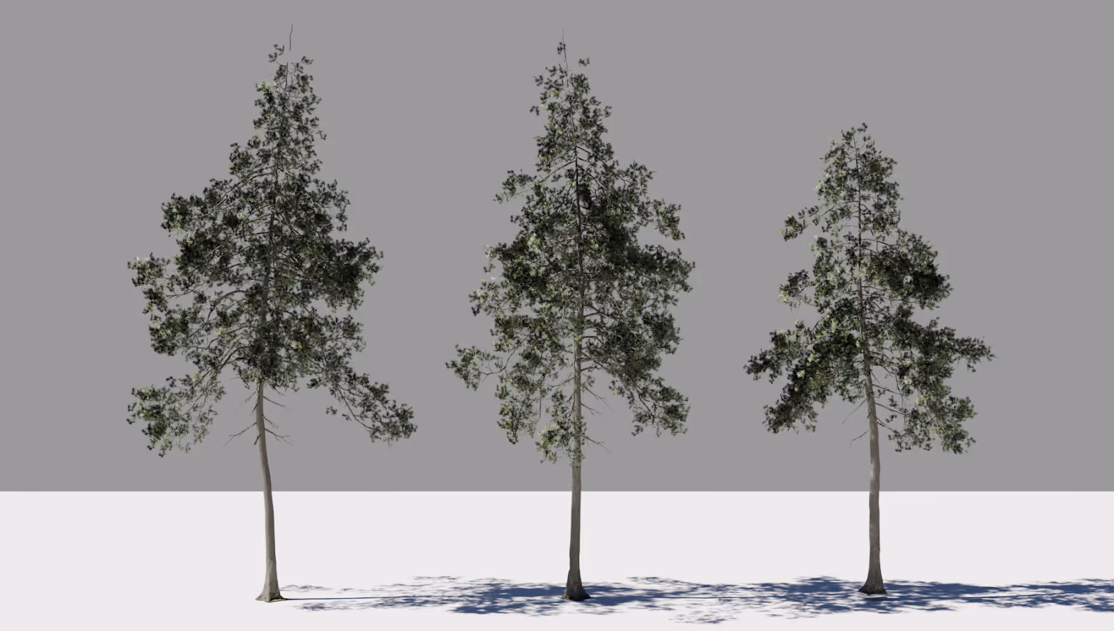 세 그루의 다른 나무가 있지만 더 많은 복사본을 만들기 위해 인스턴스화 됩니다.