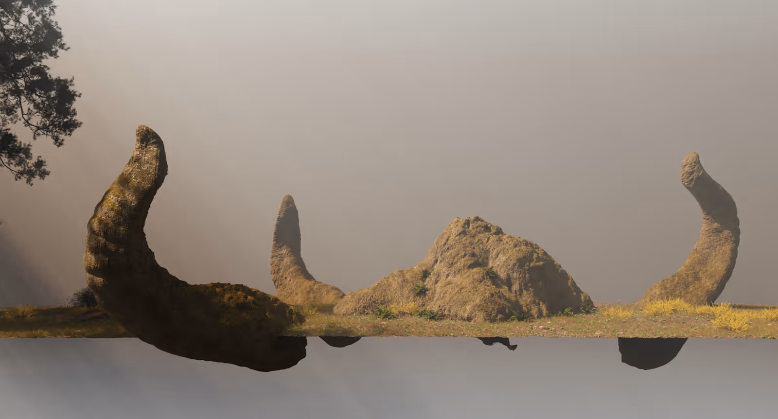 지면은 카메라 뷰에 맞는 단순한 평면일뿐이기 때문에 저는 조금 더 자연스러운 느낌을 주기 위해 약간의 지오메트리를 추가하고 약간의 웨이브를 조각했습니다.