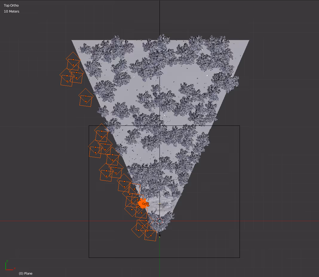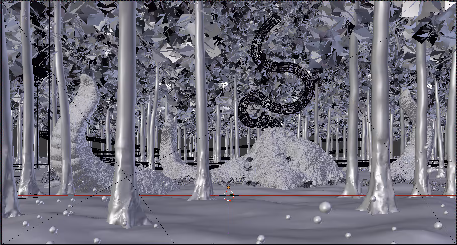 동일한 오브젝트의 인스턴스(alt+d)를약간의 측정 또는 회전과 함께 반복적으로 만들어 약간의 변형을 주며 포그라운드의 모든 오브젝트를 수작업으로 배치했습니다. 이렇게 하면 메모리를 많이 절약할 수 있습니다.